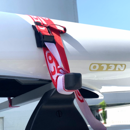 Estas correas Nelo de 2,5 metros permiten mover su canoa/kayak o bote de remos en la baca de su automóvil. Está fabricado con una correa de nailon de 30 mm de ancho para una mayor superficie, lo que significa un mejor agarre y menos daños a la embarcación. La hebilla de aluminio está protegida con una almohadilla de neopreno y cuenta con una banda elástica para guardar y sujetar el extremo suelto. Solo se vende en pares.